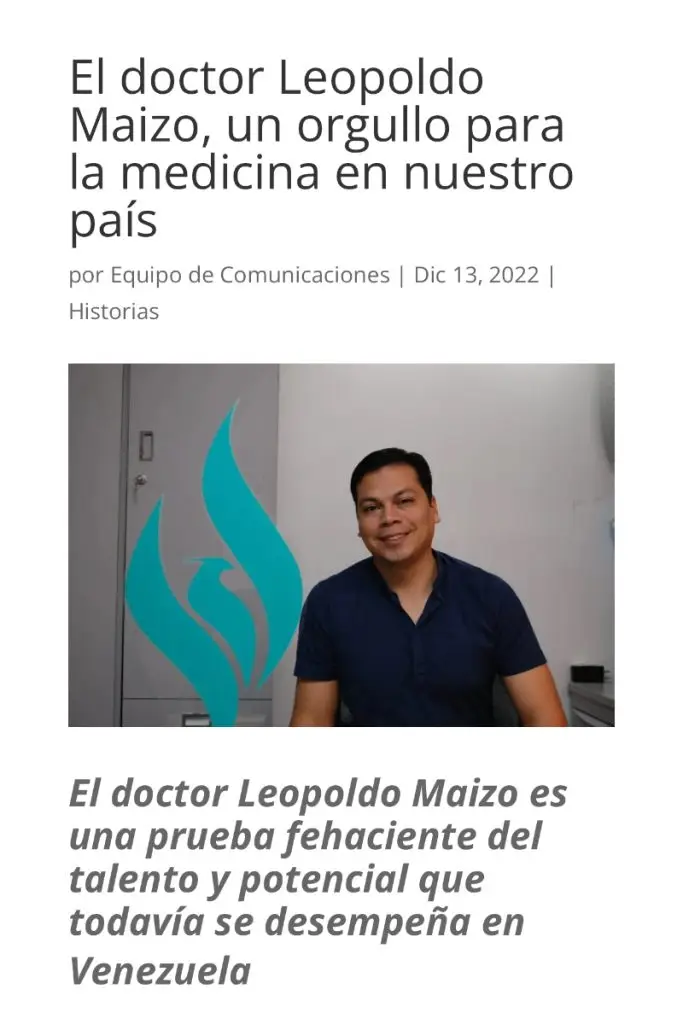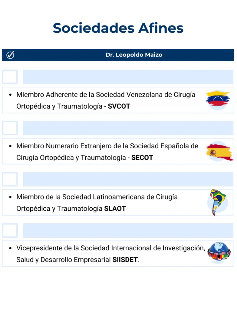 Así mismo el Dr. Maizo es autor del libro: «La Cadera Artificial», es miembro de diferentes sociedades, vicepresidente en Venzuela de la SIISDET y ha recibido el Dr. Honoris Causa por parte de dicha sociedad en Barranquilla, Colombia por sus notables contribuciones en el campo científico.