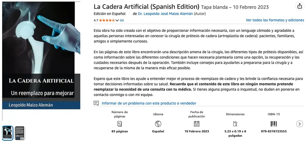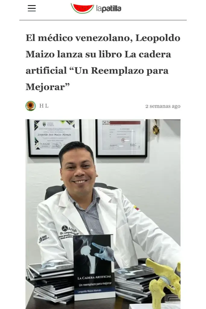 El Dr. Maizo publica su libro: «La Cadera Artificial», disponible en Amazon Books y librerías nacionales de Venezuela.